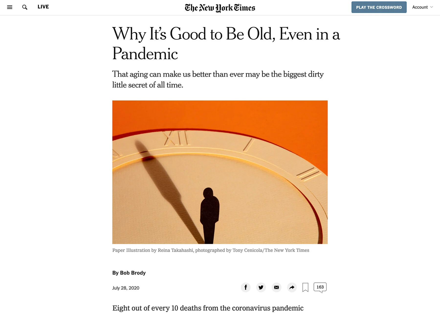The New York Times commissioned a series of images on various themes, including aging, alternative medicine, mental health, and vaccination for use in their Well section. Photographed by Tony Cenicola.
